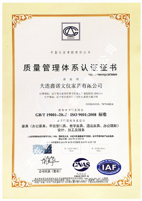 大連鑫諾文儀家具有限公司總部位于中國(guó)的北方明珠-大連。公司以教育設(shè)備,家具裝飾裝修為主導(dǎo)產(chǎn)業(yè)。經(jīng)過(guò)近10年的發(fā)展,又涉及科學(xué)實(shí)驗(yàn)設(shè)備工程、教育裝備工程、圖書(shū)館裝備工程、教學(xué)儀器等各類(lèi)家具的生產(chǎn)與研發(fā)。 公司建設(shè)了大型生產(chǎn)基地,總面積超過(guò)一萬(wàn)平方米,員工150多人。經(jīng)全體員工多年的不懈努力,公司已發(fā)展成為在大連、沈陽(yáng)擁有多家公司和生產(chǎn)基地,并在國(guó)內(nèi)擁有多家聯(lián)營(yíng)公司的科、工、貿(mào)為一體的綜合性實(shí)業(yè)企業(yè)。 鑫諾家具實(shí)業(yè)已通過(guò)ISO9001:2000國(guó)際質(zhì)量管理體系認(rèn)證,ISO14001:2004國(guó)際環(huán)境管理體系認(rèn)證。公司堅(jiān)持走品牌發(fā)展路線。旗下產(chǎn)品和服務(wù)有“家具名牌”“家具著名品牌”等多項(xiàng)榮譽(yù)。其品牌大部分已遍布東北三省、山東省等地,涉及十幾個(gè)行業(yè)等上萬(wàn)家企業(yè)單位和高校